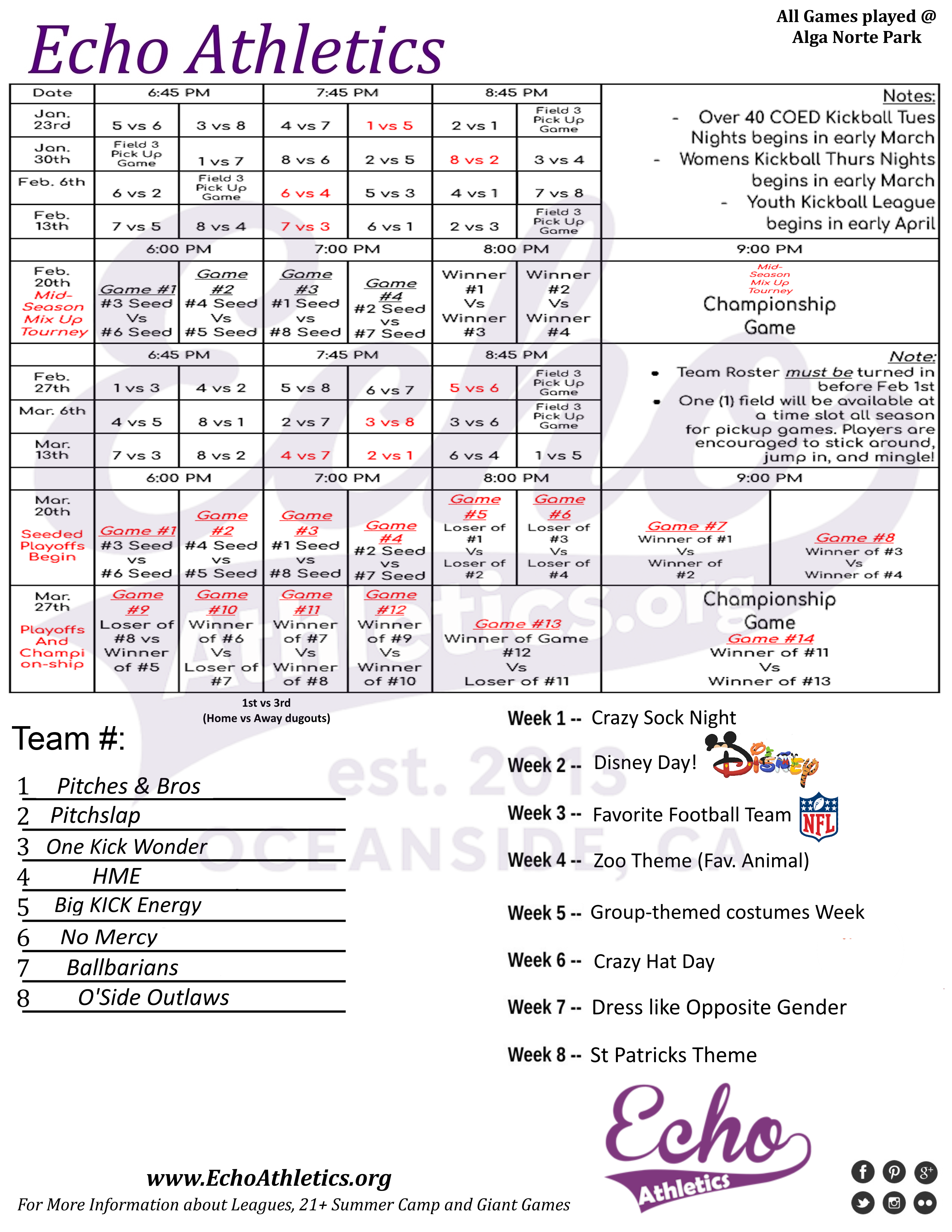 *2026 WINTER Kickball | CARLSBAD, CA**2025 Spring Softball | OCEANSIDE, CA* *2025 Spring Womens Kickball | OCEANSIDE, CA*